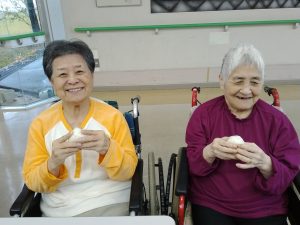 10/4は西馬場地区の秋祭りでした。 昼食に巻き寿司、栗入り小豆ご飯、すまし汁、さわらの西京焼き、 炊き合わせを、おやつには和菓子をお出ししました。 巻き寿司にはうなぎが入っており、皆さん「豪華なごはんやね~!」 「うなぎも赤飯も大好きやわ」と言われ笑顔が見られました。 お食事からも祭りのお祝いの雰囲気を感じられたようでした。 … 続きを読む!