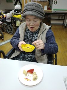 「苺久しぶりに食べたわ!」「こんなん初めて知ったわ!美味しかった!」と喜ばれ、職員もみんな笑顔になりました✌😊