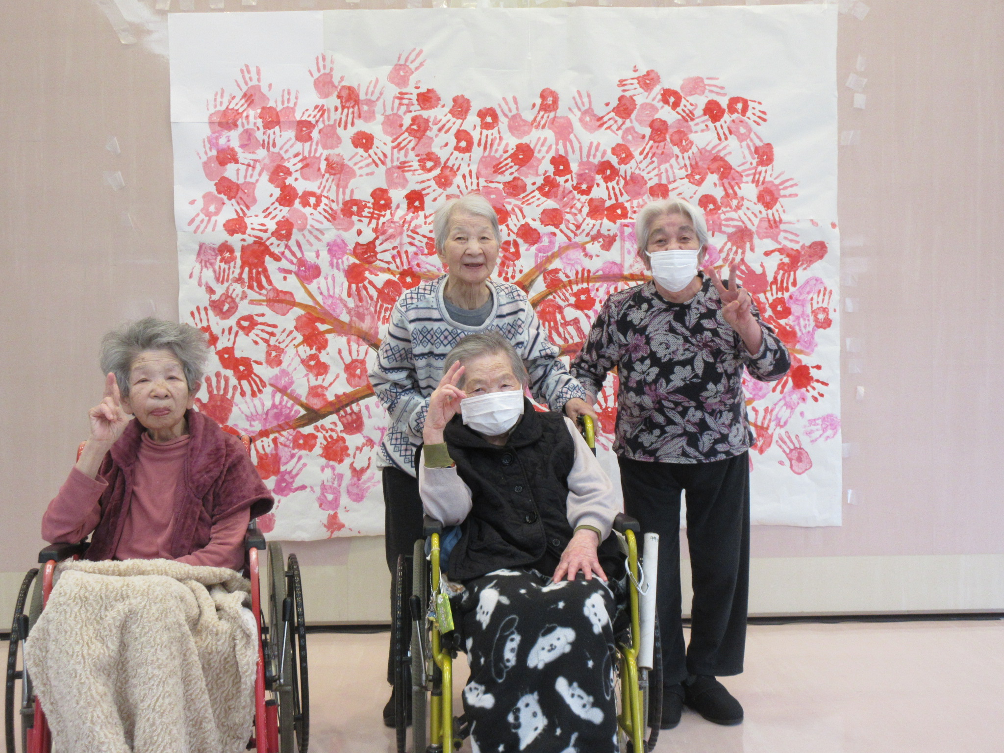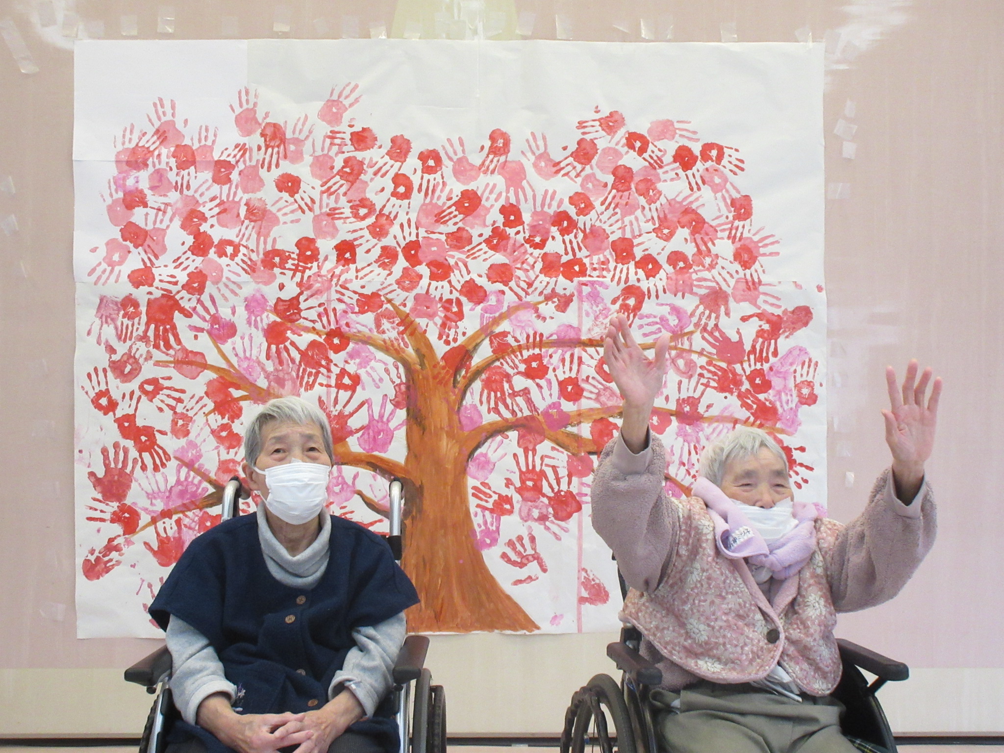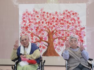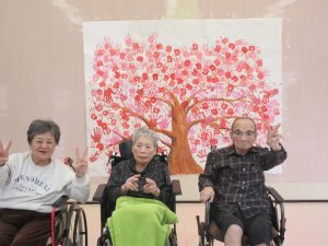 その後は、皆様の手形で大きな桜の木を作り、桜の木の前で記念撮影を行いました。皆様沢山の良い笑顔をありがとうございました。