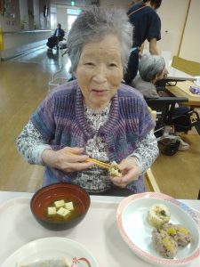 「うなぎも赤飯も大好きやわ」と言われ笑顔が見られました。