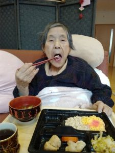 和菓子を見ると、「あら、かわいらしいね~」「食べてしまうのもったいないね」と笑顔が見られました。